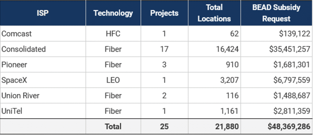 If indeed NTIA approves Maine’s BEAD funding based on MCA’s latest awards list, the total amount of broadband funding will be only about 18% of the $272 million in BEAD deployment funding that was initially allocated to the state back in 2023.